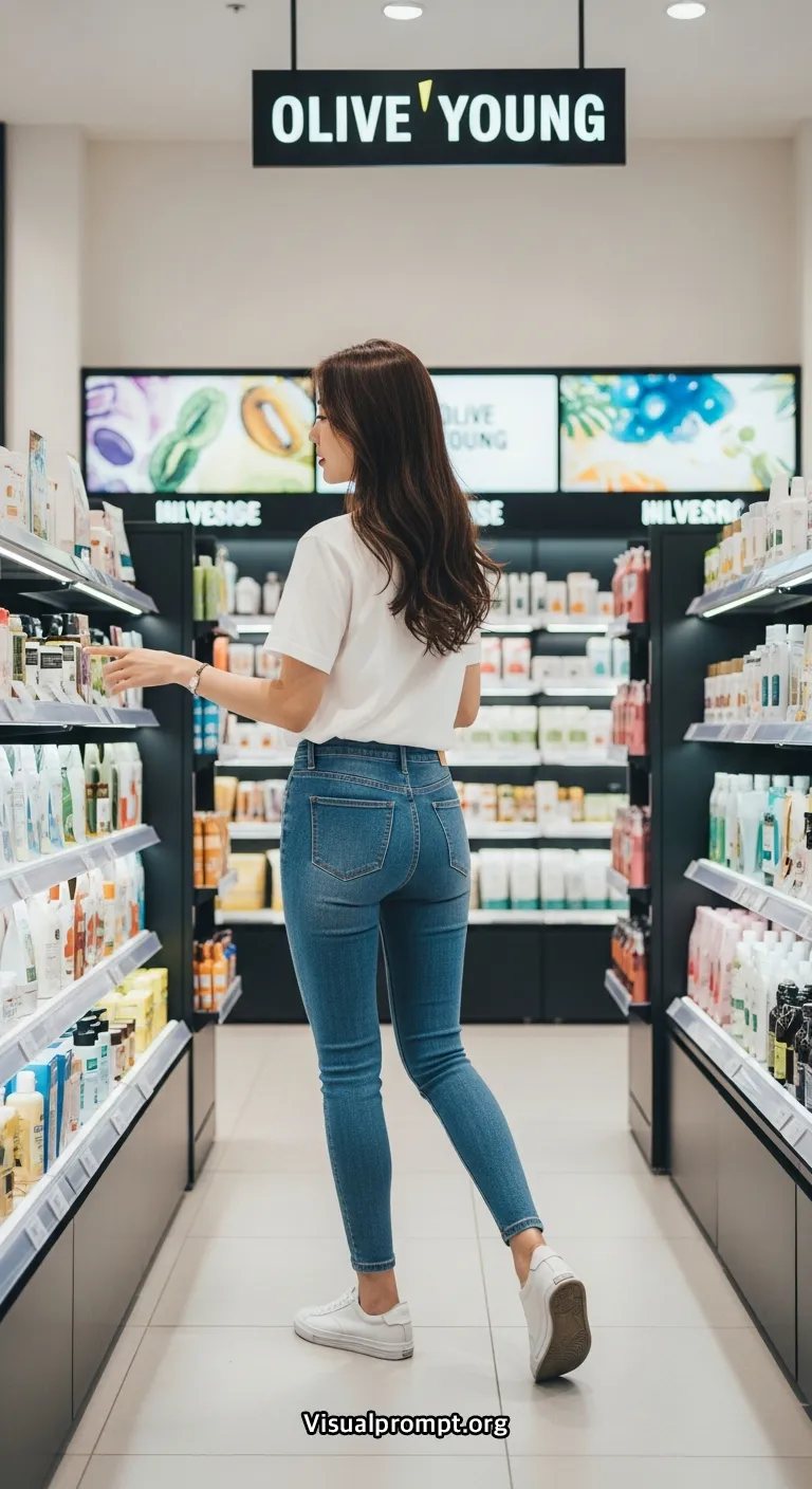올영에서 쇼핑 중인 여사친 스키니 청바지 뒤태 ㄸㄱ