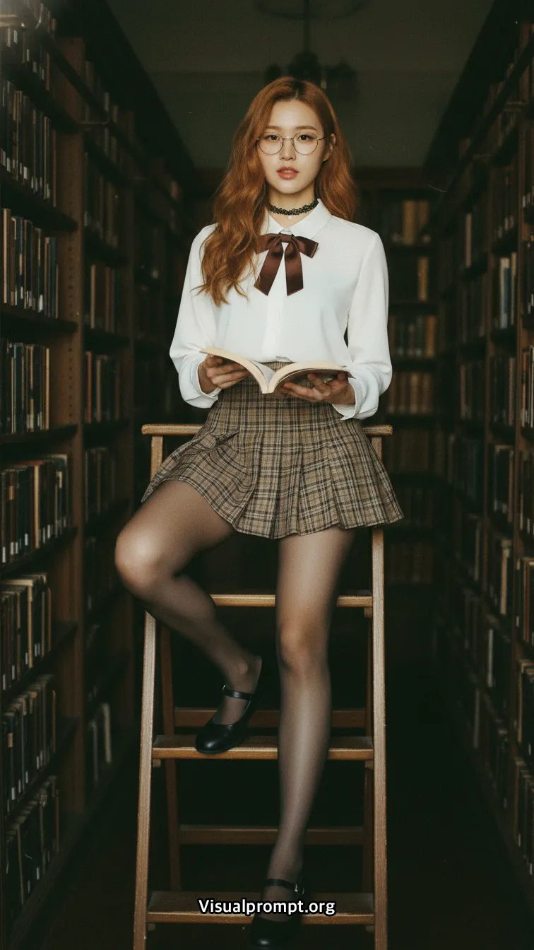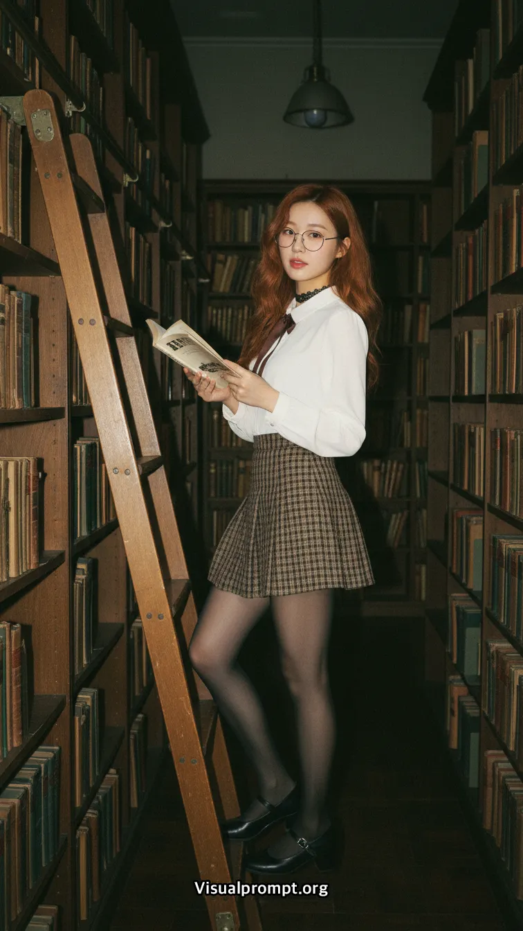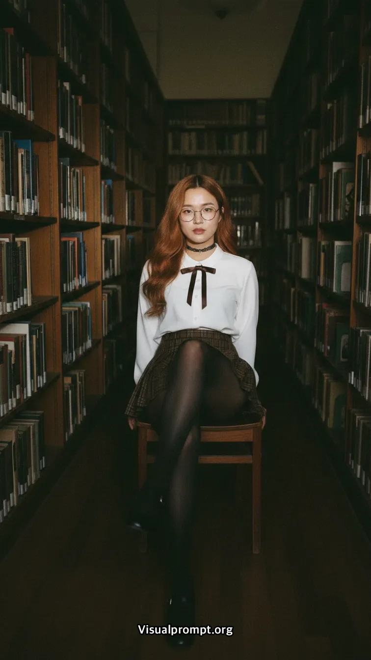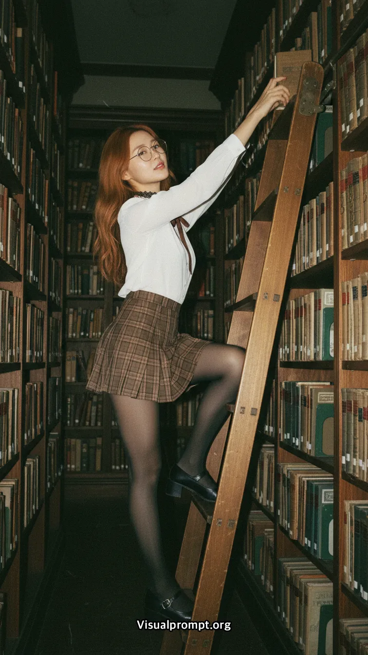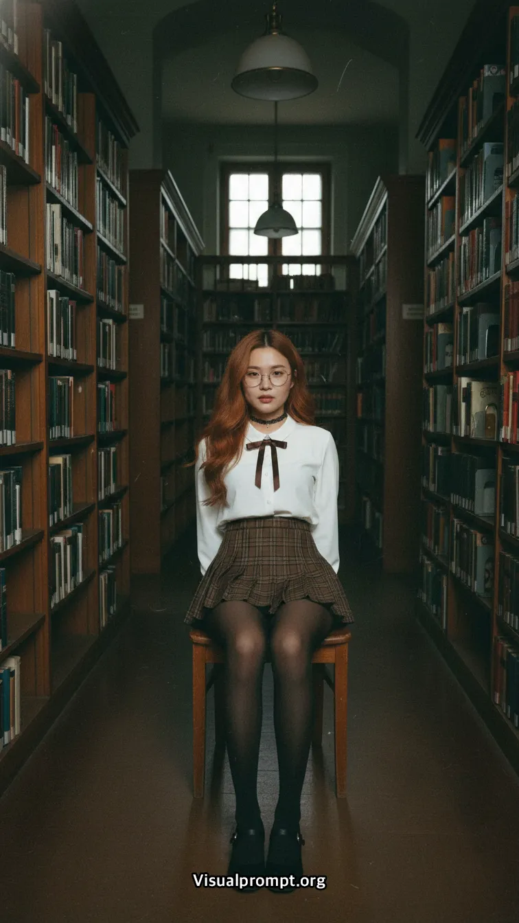 vivid, tactile film look with visible grain, raw, documentary-style realism, as if captured unexpectedly in a silent library.